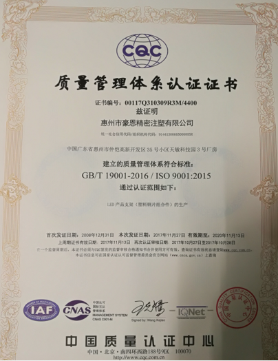 11月7日,經(jīng)過(guò)CQC專(zhuān)家審核組1天的緊張審核,我公司順利通過(guò)ISO9001:2015質(zhì)量管理體系年度評(píng)審。在ISO9001質(zhì)量體系審核小組會(huì)議上,CQC專(zhuān)家審核組對(duì)豪恩一年來(lái)ISO9001:2015質(zhì)量體系運(yùn)行情況給予了充分肯定,他們認(rèn)為豪恩公司質(zhì)量體系的運(yùn)行和去年相比有了顯著提升,各項(xiàng)工作準(zhǔn)備充分,能夠按照PDCA的方法持續(xù)改進(jìn)。一年…